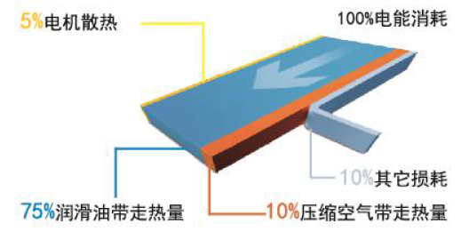 壓縮過程中產生的熱量,其中約2%通過電機等高溫部件直接輻射排放;約4%留在空壓機內部不可回收:約94%通過冷卻設備間接排放,這部分熱量是可以被回收利用。